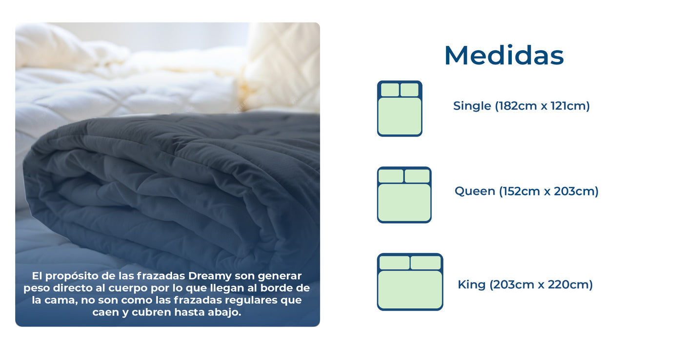 La regla base para escoger una frazada pesada es que sea el 10% de tu peso corporal.