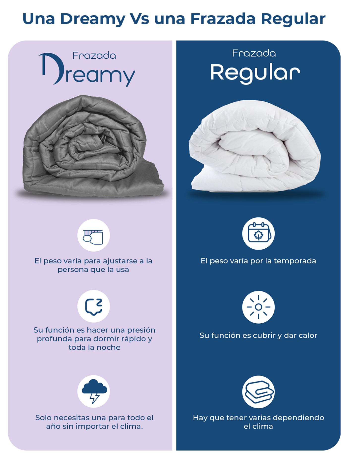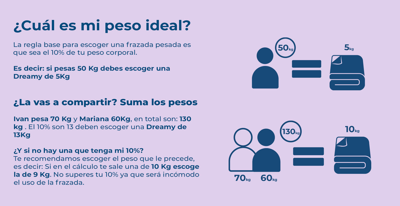 La regla base para escoger una frazada pesada es que sea el 10% de tu peso corporal.